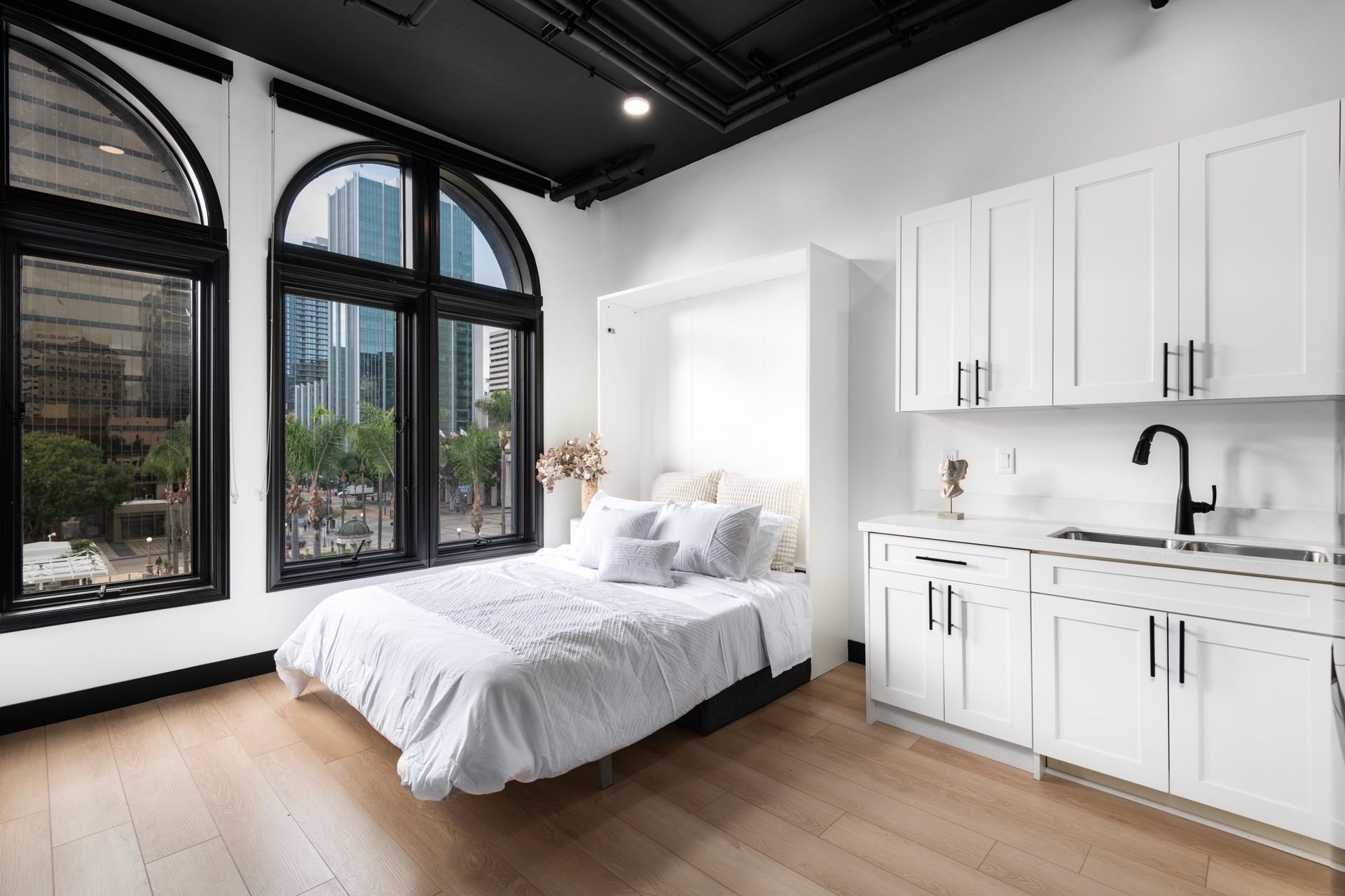 Explore contemporary living at HUE Gaslamp, modern studio lofts in San Diego's bustling Gaslamp District. Sleek design, open layouts, high ceilings, central air, and unique views await. Luxurious finishes include modern kitchens and barn door bathrooms. Immerse yourself in San Diego's cultural landmarks, from Gaslamp Quarter to Petco Park. Elevate your lifestyle with HUE Gaslamp. Schedule a tour today.